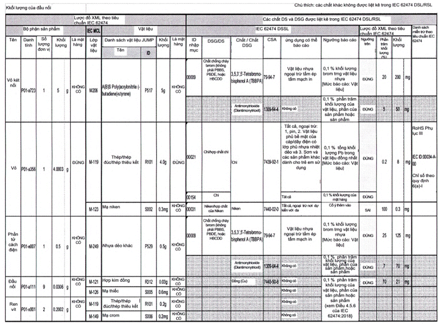 Tuân thủ phạm vi áp dụng tiêu chuẩn TCVN 13789 (IEC 62474), các hóa chất xử lý, phát thải trong quá trình sử dụng sản phẩm và vật liệu bao gói sản phẩm không thuộc phạm vi của tài liệu này.