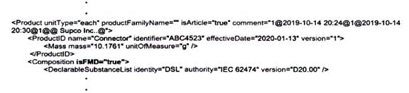 Tối thiểu phải cung cấp một công bố về sự phù hợp hoặc một công bố về thành phần. Cả hai có thể được cung cấp cùng với một công bố về lớp vật liệu, một danh sách truy vấn, một danh sách miễn trừ và tập tin đính kèm. Danh sách truy vấn thường đi kèm với một công bố về sự phù hợp hoặc công bốvề thành phần. Nếu cần miễn trừ, chúng được sử dụng kết hợp với công bố về sự phù hợp và công bố về thành phần. Cả hai công bố đều có thể được liên lạc ở chế độ người yêu cầu/người trả lời hoặc ở chế độ phân phối.