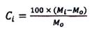 6.3 Để có số liệu đầy đủ hơn về độ hút nước của vật liệu, có thể tính lượng nước được hấp thụ tương ứng với 1 h, 8 h, 24 h, 48 h, 72 h, v.v. Lượng nước được hấp thụ (Ci tính bằng phần trăm) ở thời gian chung ti được tính như sau: