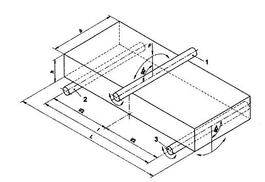 Mẫu được đặt chính giữa trên các thanh đỡ (xem Hình 1). Thanh truyền lực được đặt giữa mẫu thử.
