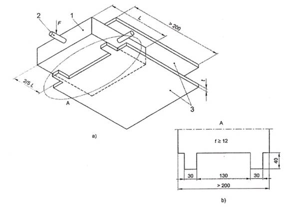 5.6 Dụng cụ kẹp bao gồm hai tấm kim loại có hình dạng và kích thước như trong Hình 1.