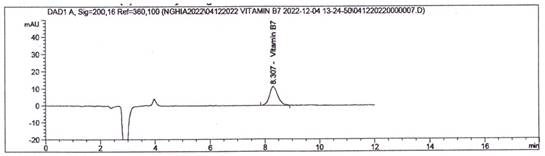Thông tin về sắc ký đồ điển hình, hiệu suất thu hồi và giới hạn định lượng của hoạt chất vitamin B7