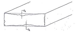 Từ mỗi mẫu gỗ sấy, sử dụng thước kẹp và thước phẳng hoặc vật có mặt phẳng (xem Điều 4) để đo chiều sâu chỗ sâu nhất của vết móp (Hình 7) trên mỗi bề mặt rộng (DA và DB).