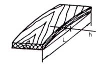 Từ mỗi mẫu gỗ sấy, sử dụng thước kẹp và thước phẳng hoặc vật có mặt phẳng (xem Điều 4) đo chiều cao đường cong lòng máng (h) tại vị trí có giá trị lớn nhất (Hình 10).
