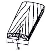 Từ mỗi mẫu gỗ sấy, sử dụng thước kẹp và thước phẳng hoặc vật có mặt phẳng (xem Điều 4) đo chiều cao đường cong cạnh (h) tại vị trí có giá trị lớn nhất (Hình 9).