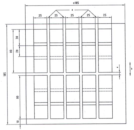 5.2. Mẫu thử phải có kết cấu hai lớp hoặc ba lớp và phù hợp với hình dạng và kích thước đưa ra trong Hình 1 và Hình 2. Các mẫu thử phải được cắt từ các tấm thử được chuẩn bị như mô tả trong Điều 6.