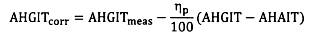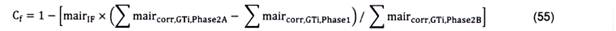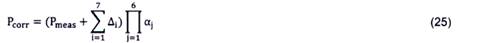 trong đó Pcorr, evap cooler O/S là công suất hiệu chỉnh được xác định bằng Công thức (26) với các hiệu chỉnh được thực hiện đối với (các) nhiệt độ và độ ẩm đầu vào tham chiếu cơ sở xử lý không khí đầu vào khi IACE không hoạt động và KPevap cooler là hệ số hiệu chỉnh công suất được sử dụng để hiệu chỉnh hiệu suất của nhà máy đã thí nghiệm với IACE không hoạt động để thực hiện nó với IACE đang hoạt động ở nhiệt độ và độ ẩm đầu vào tham chiếu cơ bản.
