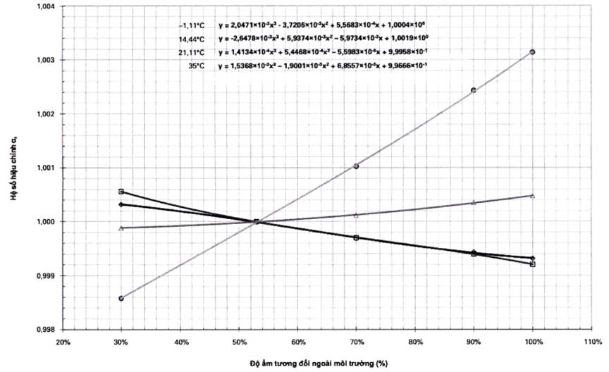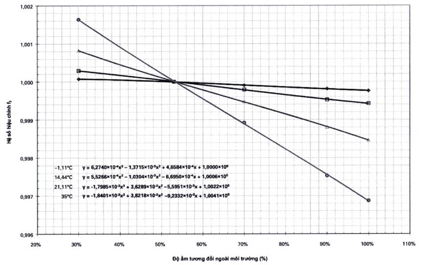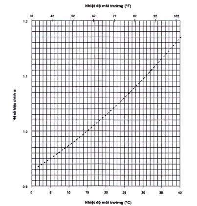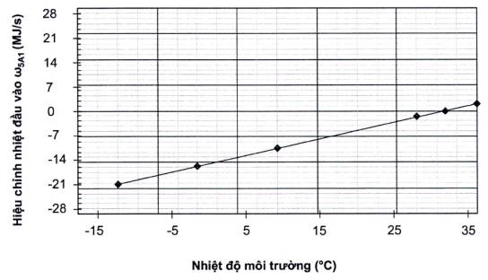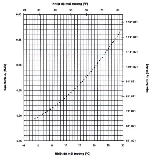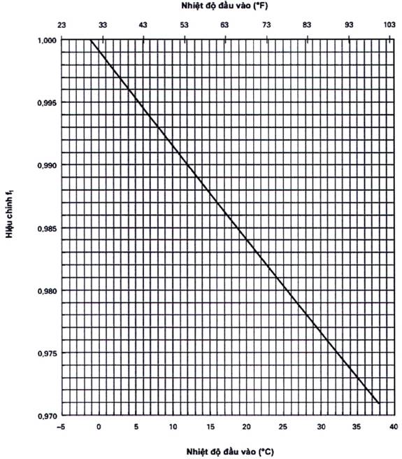 | CHÚ THÍCH CHUNG: Sự thay đổi 30% về độ hiệu quả tương ứng với sự thay đổi 0,83°C nhiệt độ đầu ra máy nén ở độ ẩm tương đối tương ứng. | |||||