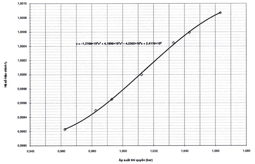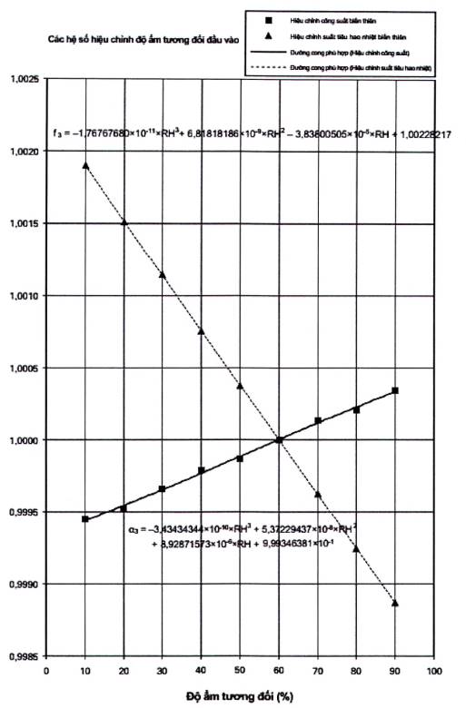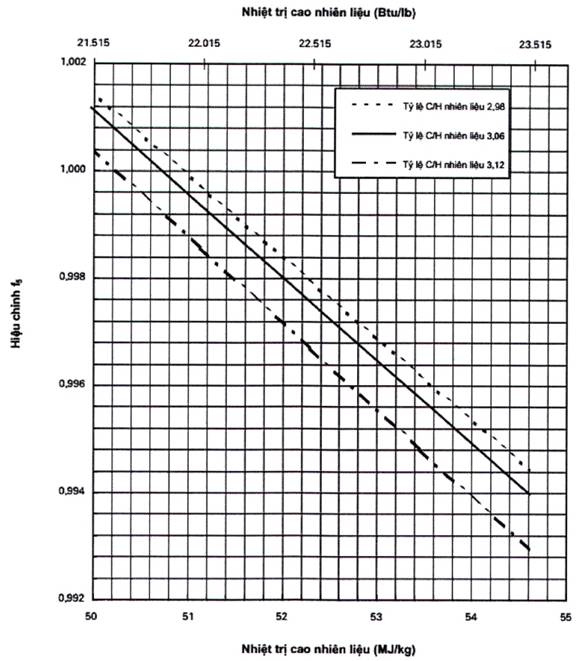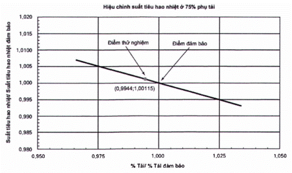 Sử dụng đường cong trong Hình H. 2 để thu được hệ số hiệu chỉnh suất tiêu hao nhiệt theo tải f7 = (1/1,00115) = 0,99885.