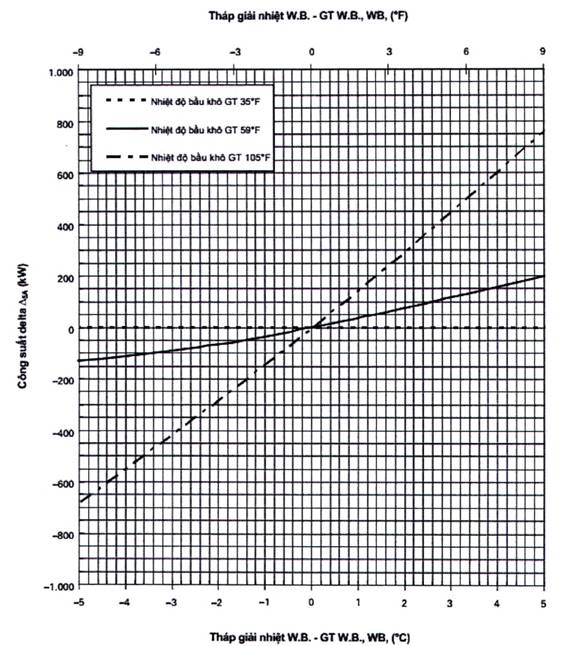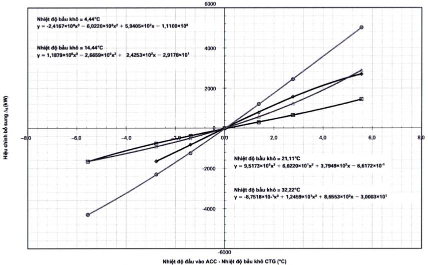 Phụ lục D (tham khảo) Đại diện của hiệu chỉnh sự khác biệt về nhiệt độ giải nhiệt so với nhiệt độ không khí đầu vào của turbine khí (Δ5 hoặc (ω5), nếu cần thiết, đối với nhà máy chu trình kết hợp điển hình
