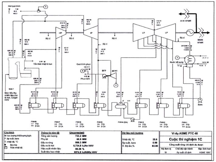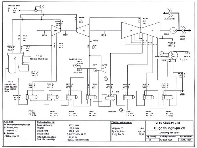 Phụ lục C (tham khảo) Tính toán mẫu, nhà máy đồng phát chu trình kết hợp không có vòi đốt bổ sung. Giải nhiệt bằng nguồn nước làm mát bên ngoài đường bao thí nghiệm