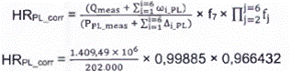Tính suất tiêu hao nhiệt theo phụ tải thấp đã hiệu chỉnh ở các điều kiện tham chiếu được chỉ định (HRPL_corr) bằng cách sử dụng công thức sau: