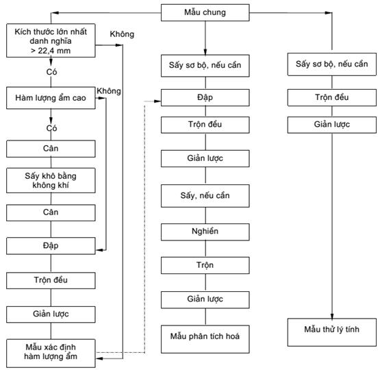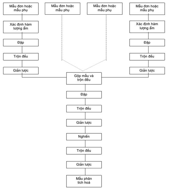 Cần chọn trình tự chuẩn bị mẫu để hạn chế sai số chuẩn bị mẫu, mà không phải giữ lại khối lượng mẫu quá lớn. Thí dụ sơ đồ chuẩn bị mẫu được nêu ở Phụ lục A.