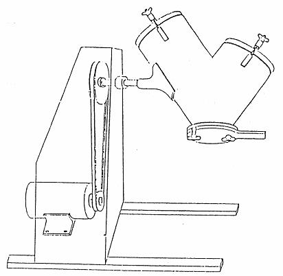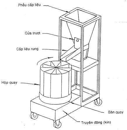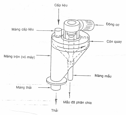 Máy trộn đều hình côn kép nêu ở Hình B.1 phù hợp để trộn đều phần còn lại của giai đoạn thứ nhất phân chia mẫu. Máy gồm phần trụ ngắn, tấm vách ngăn đặt nghiêng, cửa đóng kín một đầu và được ghép chắc chắn trên bộ phận đỡ phù hợp. Máy trộn quay khoảng 60 vòng/phút. Đối với lượng mẫu đến 0,25 kg trộn trong 1 phút là đủ, nhưng với lượng mẫu lớn hơn phải trộn đến 4 phút.