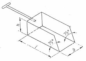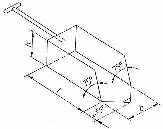Cấu tạo của xẻng xúc được nêu ở Hình D.2, kích thước nêu ở Bảng D.2. Xẻng xúc không phù hợp để lấy mẫu quặng có kích thước lớn nhất danh nghĩa lớn hơn 45 mm.
