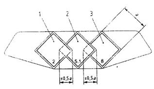 Một bộ các hình vuông đặt nghiêng một góc 45 0 (dạng hình thoi) được quy định trong Kiến nghị của Liên hiệp quốc về Chuyên chở hàng hóa nguy hiểm – Qui định mẫu (model).