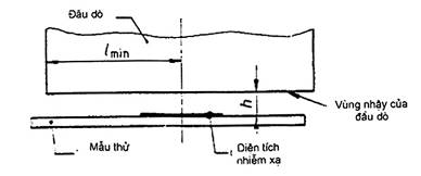 Để phù hợp với các yêu cầu hình học, tỷ số (lmin-12,5 mm) : h không được nhỏ hơn 3, trong đó lmin là khoảng cách nhỏ nhất, tính bằng milimét, từ tâm khu vực bị nhiễm xạ và vuông góc với tiết diện ngang của đầu dò, đến mép vùng nhạy của tiết diện ngang đầu dò; và h là khoảng cách, tính bằng milimét, từ bề mặt bị nhiễm xạ của mẫu thử đến bề mặt đầu dò.