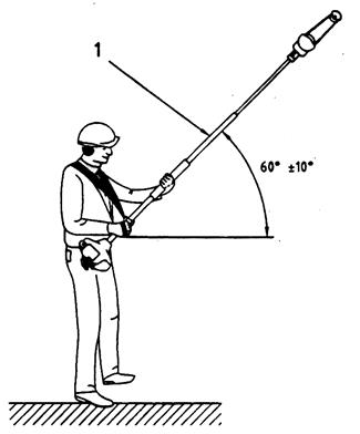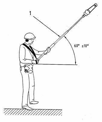 Cụm máy cần làm việc với một góc nâng 60o ± 10o theo hình C.2. Cụm máy được giữ bằng hai tay với tư thế sử dụng lâu trong ngày và được nối vào dây đeo. Cụm máy với độ dài trục có thể điều chỉnh được hoặc độ dài trục khác nhau, được đo ở độ dài trục lớn nhất và nhỏ nhất.
