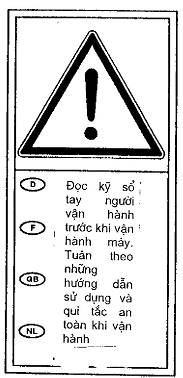 Chú thích - Nội dung bảng ký hiệu an toàn (h .8): Đọc kỹ sổ tay người vận hành trước khi vận hành máy. Tuân theo những hướng dẫn sử dụng và qui tắc an toàn khi vận hành.