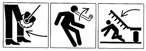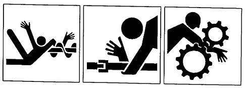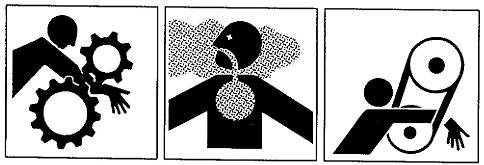 Hình D.17 - Các mẫu hình vẽ trình bày nguy hiểm riêng biệt do các bộ phận máy gây nên