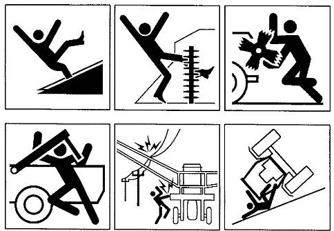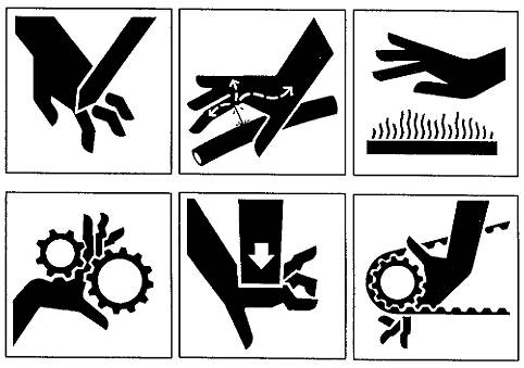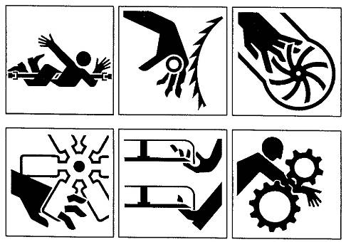 Hình D.16 - Các mẫu hình vẽ trình bày các máy móc và mối nguy hiểm do các thành phần chủ yếu gây nên
