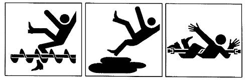 D.7.2. Hình D.16 cung cấp các mẫu hình ảnh sử dụng toàn bộ máy hoặc các thành phần chủ yếu của máy trong mô tả các mối nguy hiểm bằng hình vẽ. Hình D.17 cung cấp các mẫu hình vẽ sử dụng mối nguy hiểm riêng biệt do các thành phần của máy gây nên, không ở trong phạm vi vị trí máy của chúng, trong mô tả các mối nguy hiểm bằng hình vẽ.