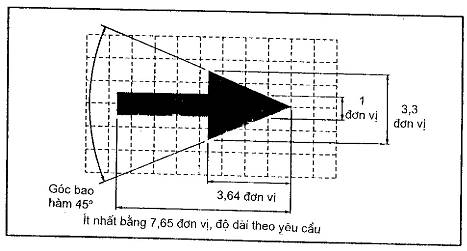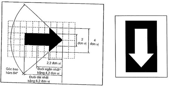 Hình D.18 trình bày các kích thước mũi tên. Mũi tên này được sắp xếp theo cỡ thông thường cân đối với kích thước vật thể bay hoặc rơi trình bày trong hình vẽ đã cho. Hình D.19 cung cấp các mẫu hình ảnh nguy hiểm sử dụng mũi tên này để thể hiện các vật rơi hoặc bay và hướng chuyển động của chúng.