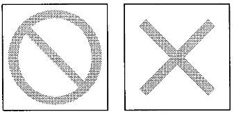 Hình D.29 - Các mẫu hình vẽ sử dụng đường chéo chữ thập màu đỏ để thông báo ý kiến về hành động bị cấm hoặc vị trí nguy hiểm