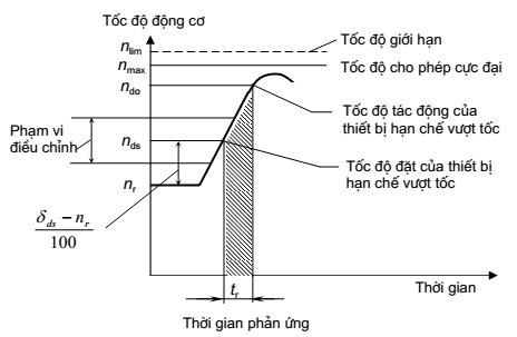 4.8. Thời gian phản ứng ( Response time ), tr: Khoảng thời gian từ khi thiết bị hạn chế vượt tốc đạt đến và vượt quá tốc độ điều chỉnh (4.2) cho đến khi nó đạt đến tốc độ làm việc (4.4).
