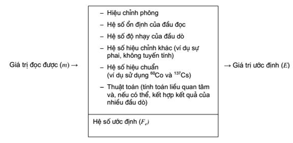 Trong mọi tình huống cụ thể , một vài trong các hệ số này có thể không cần thiết và các hệ số khác có thể phải được đưa ra. Vì lý do đó, trong tiêu chuẩn này một hệ số duy nhất được cho là để thay thế cho toàn bộ quy trình, đó là hệ số ước định (Fe) - hệ số chuyển đổi giá trị đọc được (m) thành giá trị ước định (E).