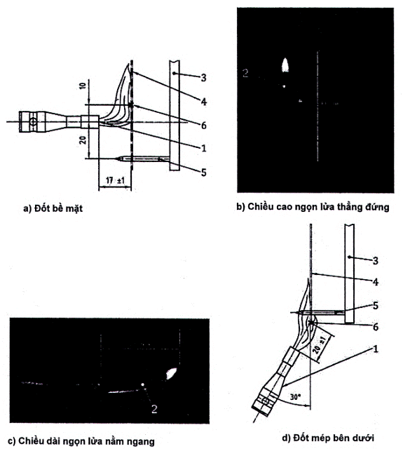 Đốt ngọn lửa đèn xì theo quy định vào bề mặt hoặc cạnh đáy của mẫu thử vật liệu dệt đặt theo phương thẳng đứng trong thời gian 10 s.
