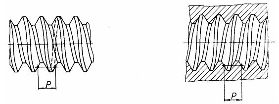 | Hình 2 - Ren ngoài, ren phải một đầu mối | Hình 3 - Ren trong, ren phải một đầu mối |
