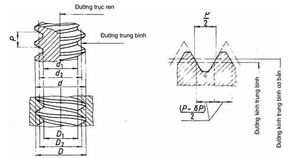 2. Thông thường, đường kính ngoài cơ sở cũng là đường kính danh nghĩa của ren.