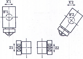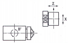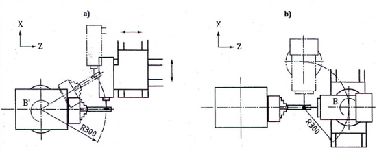 | Kiểm độ nhất quán về khoảng cách giữa: a) một điểm trên đường tâm trục chính mang phôi, xoay quanh trục B’, và mặt phẳng chuyển động ZX; b) một điểm trên đường tâm trục chính mang dụng cụ cắt, xoay quanh trục B, và mặt phẳng chuyển động ZX; | ||
