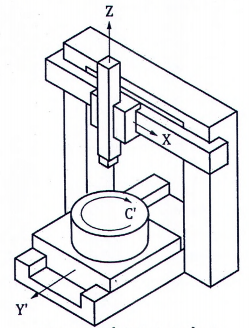 | Kiểm độ vuông góc của chuyển động trục Y (khung hoặc bàn máy mang phôi) với trục C [E A(0C)Y ]. CHÚ THÍCH: Phép kiểm này áp dụng cho các máy thể hiện trong Bảng 1, kiểu B c) và kiểu B d). | ||