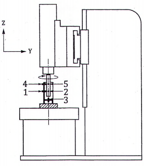 | Xem và tham chiếu ISO 230-7 Phép kiểm này là một phép kiểm trục chính với chiều cảm biến quay (5.3, ISO 230-7:2015). Sau khi cài đặt phương tiện đo, trục chính được chạy khởi động ở tốc độ 50 % tốc độ quay trục chính lớn nhất trong khoảng thời gian 10 min, trừ khi có quy định khác theo thỏa thuận giữa nhà sản xuất/nhà cung cấp và người sử dụng. Chuyển động có sai số tổng được định nghĩa trong 3.5.1, ISO 230-7:2015; giá trị chuyển động có sai số tổng được định nghĩa trong 3.8.2, ISO 230-7:2015. a) Giá trị chuyển động có sai số hướng kính tổng E hướ n g k í nh( C1 ) (sử dụng các đầu dò 1 và 2) Phép đo chuyển động có sai số hướng kính được mô tả trong 5.3.2, ISO 230-7:2015. Chuyển động có sai số hướng kính cần được đo gần với đầu mút trục chính nhất có thể (các đầu dò 1 và 2 trên sơ đồ của phép kiểm). Đối với chuyển động có sai số hướng kính E hướ n g k í nh( C1 ) , một đồ thị tọa độ cực chuyển động có sai số tổng (3.6.2, ISO 230-7:2015) với một tâm đường tròn bình phương nhỏ nhất (LSC) (3.7.4, ISO 230-7:2015) cần được cung cấp. b) Giá trị chuyển động có sai số hướng trục tổng E Z(C1) (sử dụng đầu dò 3) Phép đo chuyển động có sai số hướng trục được mô tả trong 5.3.4, ISO 230-7:2015. Đối với chuyển động có sai số hướng trục E Z(C1) , một đồ thị tọa độ cực chuyển động có sai số tổng (3.6.2, ISO 230-7:2015) với một tâm biểu đồ cực (PC) (3.7.2, ISO 230-7:2015) cần được cung cấp. c) Giá trị chuyển động có sai số nghiêng tổng E nghi ê ng( C1 ) (sử dụng các đầu dò 1, 2, 4, 5) Phép đo chuyển động có sai số nghiêng được mô tả trong 5.3.3, ISO 230-7:2015. Chuyển động có sai số nghiêng cũng có thể được kiểm chỉ với hai đầu dò không tiếp xúc (xem 5.3.3.2, ISO 230-7:2015). Đối với chuyển động có sai số nghiêng E nghi ê ng( C1 ) , một đồ thị tọa độ cực chuyển động có sai số tổng (3.6.2, ISO 230-7:2015) với một tâm biểu đồ cực (PC) (3.7.2, ISO 230-7:2015) cần được cung cấp. Đối với các phép kiểm này phải công bố các thông số sau: 1) các vị trí hướng kính, hướng trục hoặc theo mặt tại đó thực hiện các phép đo; 2) sự nhận biết tất cả các vật, bia và đồ gá được sử dụng; 3) vị trí thiết lập phép đo; 4) việc định vị của bất kỳ giai đoạn định vị thẳng hoặc quay nào mà được kết nối với thiết bị được thử; 5) góc phương của chiều cảm biến, ví dụ các góc hướng trục, hướng kính hoặc trung gian khi thích hợp; 6) trình bày kết quả đo, ví dụ như: giá trị chuyển động có sai số, đồ thị tọa độ cực, đồ thị theo thời gian, đồ thị tần số; 7) tần số quay của trục chính (bằng không đối với chuyển động có sai số tĩnh); 8) thời gian tính bằng giây hoặc số vòng quay của trục chính; 9) quy trình chạy khởi động máy hoặc chạy rà thích hợp; 10) đáp ứng tần số của phương tiện đo, tính bằng héc (hz) hoặc chu kỳ trên vòng quay, bao gồm cả đặc tính làm giảm của bấy kỳ bộ lọc điện tử nào - trong trường hợp phương tiện đo dạng kỹ thuật số, độ phân giải độ dịch chuyển và tốc độ lấy mẫu; 11) vòng cấu trúc, bao gồm vị trí và hướng của các cảm biến so với hộp trục chính từ đó chuyển động có sai số được báo cáo, các đối tượng được quy định theo đó các đường tâm trục chính và các trục tọa độ tham chiếu được định vị trí và các phần tử kết nối với các đối tượng này; 12) thời gian và ngày đo; 13) loại và tình trạng hiệu chuẩn của tất cả các phương tiện đo; 14) các điều kiện vận hành khác có thể ảnh hưởng đến phép đo, như nhiệt độ môi trường. Nếu các phép đo nghiêng là không cần thiết (theo thỏa thuận giữa nhà cung cấp và người sử dụng), khi đó chỉ cần sử dụng ba đầu dò độ dịch chuyển (1, 2 và 3) và có thể thay trục kiểm bằng khối cầu kiểm chính xác. | ||||||||