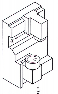 Máy tiện NC (3.3) được trang bị (các) dụng cụ cắt được dẫn động công suất và có khả năng định hướng trục chính mang phôi quanh trục của nó.