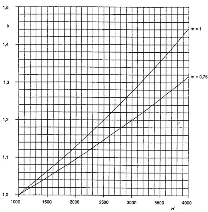 Hình 1 - Hệ số hiệu chỉnh độ cao so với mực nước biển