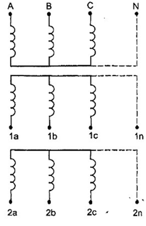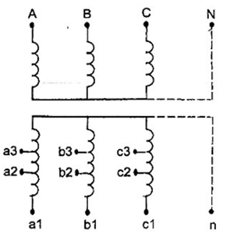 | Hình 11 - Máy biến đổi một pha có một cuộn thứ cấp nhiều đầu ra | Hình 12 - Cụm ba pha có một cuộn thứ cấp nhiều đầu ra |