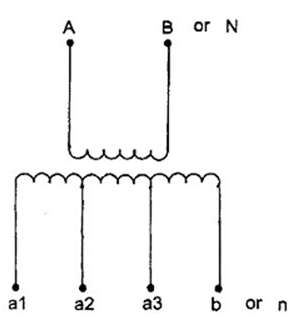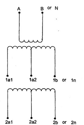 Hình 13 - Máy biến đổi một pha có hai cuộn thứ cấp nhiều đầu ra