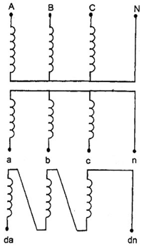 | Hình 14 - Máy biến đổi một pha có một cuộn dây điện áp dư | Hình 15 - Máy biến đổi ba pha có một cuộn dây điện áp dư |