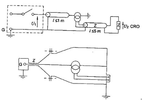 Hình 18 - Phép đo quá điện áp truyền dẫn: mạch thử nghiệm bố trí thử nghiệm GIS