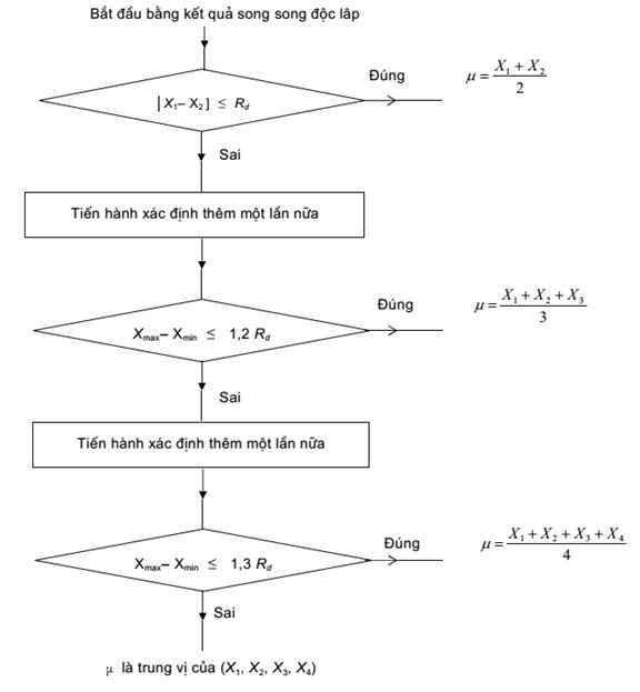Sau khi tính được các kết quả song song độc lập theo công thức (1), so sánh kết quả đó với giới hạn kết quả song song độc lập (Rd), sử dụng quy trình nêu trong Phụ lục A, và nhận được kết quả cuối cùng m (xem 8.2.5).