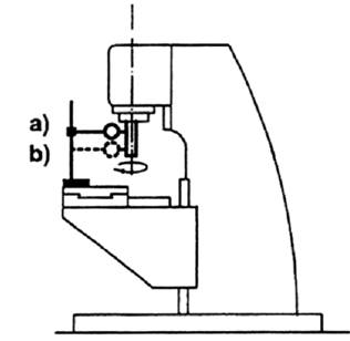 | Kiểm độ đảo của côn trong trục chính: a) Tại mút trục chính; b) Tại khoảng cách 300 mm so với đầu mút trục chính. | ||