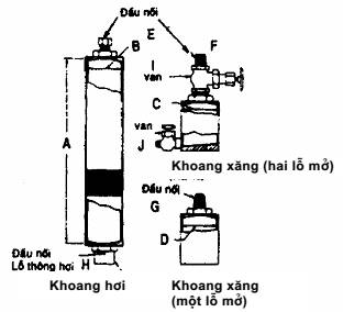 | B, C, D | Đường kính trong của khoang lỏng và khoang hơi | 51 ± 3 | 2 ± 1/8 |