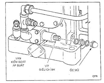 B.3.5.1.8 Tháo cụm van kiểm soát áp suất dầu, làm sạch bằng dung môi, kiểm tra độ mài mòn của các chi tiết và thay thế nếu cần thiết (Cảnh báo - Bên cạnh những lưu ý khác, tránh xiết quá chặt 4 bu lông trên thân van để ngăn việc làm méo van và làm giới hạn sự di chuyển của piston).