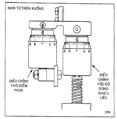 3.1.5 Thời điểm phun nhiên liệu (góc phun sớm) (injection timing, (injection advance)), thời điểm trong chu kỳ cháy, thể hiện bằng số đo góc quay của trục khuỷu tính theo độ, tại đó nhiên liệu bắt đầu được phun vào buồng cháy.