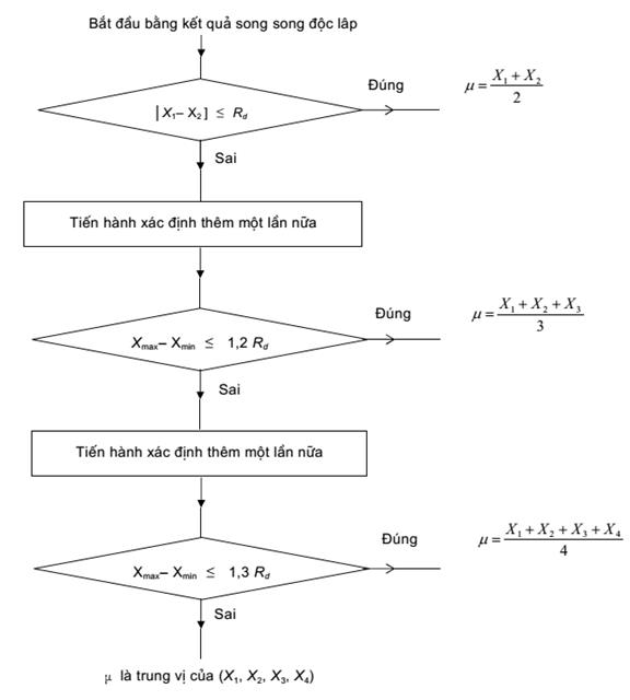 - giữa các phòng thí nghiệm, dùng công thức (3 và 5), trung bình số học kết quả cuối cùng (8.2.5) của hai phòng thí nghiệm.