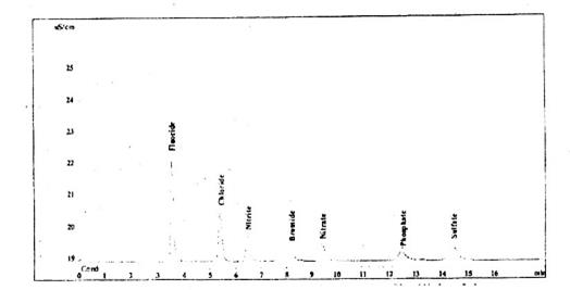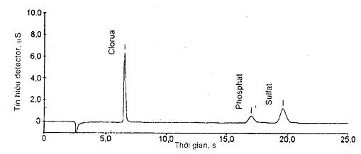 A.3.11.9. Bơm 25 mL dung dịch mẫu A.3.11.5 vào sắc ký, và đo diện tích các pic tương ứng với các ion clorua và sulfat.