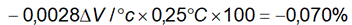 -0,0016∆V°F x 0,50°C x 100 = - 0,080%